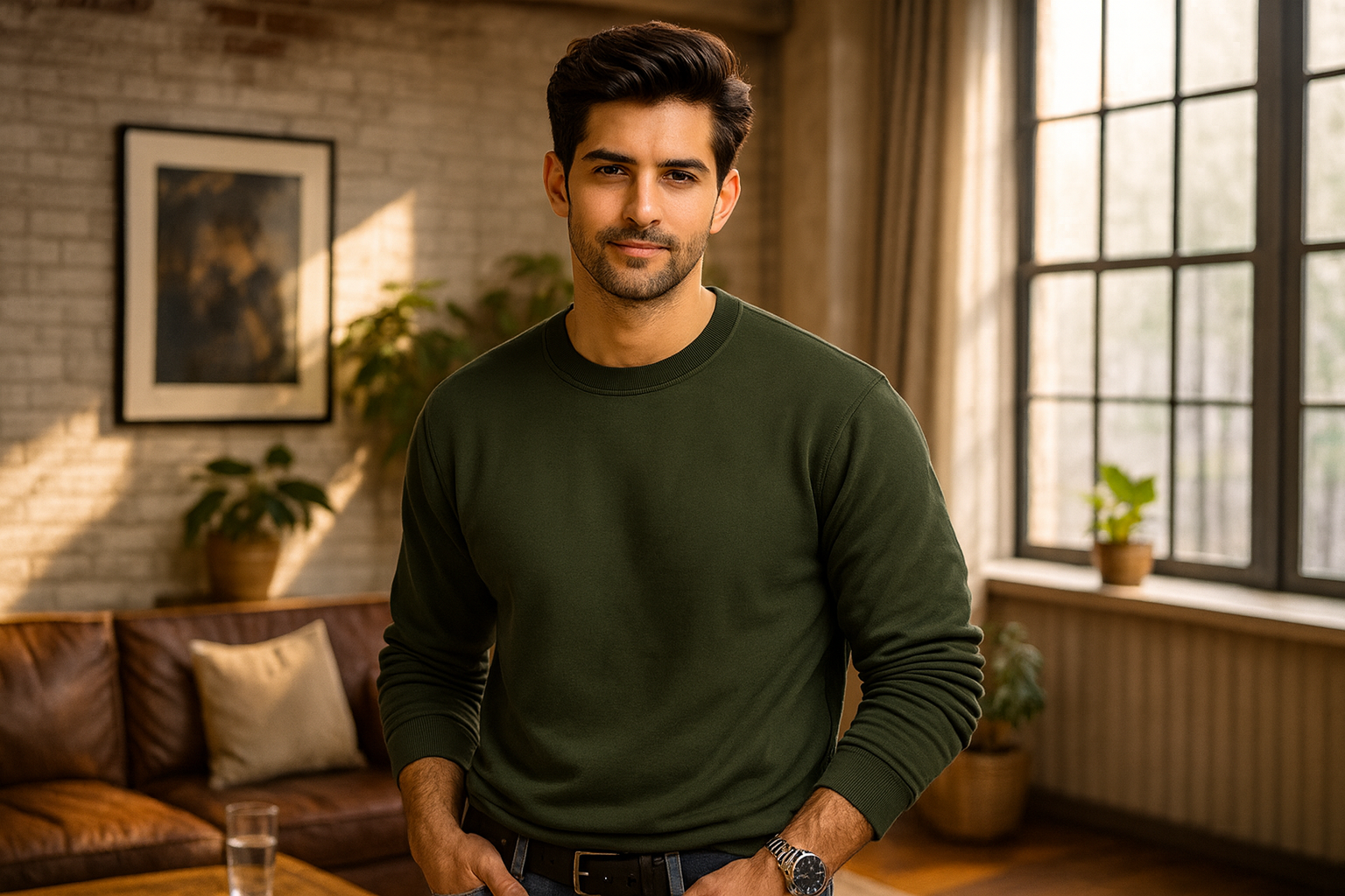 Sweatshirt, 320gsm, Cotton Brushed Loopknit, 88% cotton, 12% polyester, Army Green color