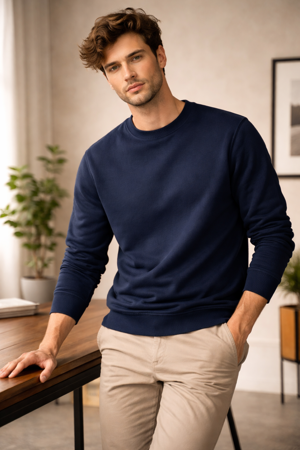 Sweatshirt, 320gsm, Cotton Brushed Loopknit, 88% cotton, 12% polyester, Navy color